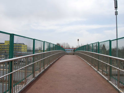 橋梁防拋網采用選用低碳鋼絲、鋁鎂合金絲編織焊接而成,使用噴塑進行防腐處理。