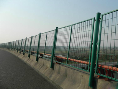 橋梁防拋網由于采用噴塑進行防腐處理防腐處理方式高效浸塑十年防銹,具有防老化,抗曬,耐候等特點,網身輕巧、造型新穎、美觀耐用。本產品特別適合當作橋梁防拋網使用,拆裝方便,重復使用性好,可根據需要對圍網重新布局,橋梁護欄網屬于環保產品,最終可回收利用。 橋梁護欄網網格結構簡練、便于運輸、安裝不受地形起伏限制,特別是對于山地、坡地、多彎地帶適應性極強。該產品堅固耐用、價格中等偏低,適合大面積采用。